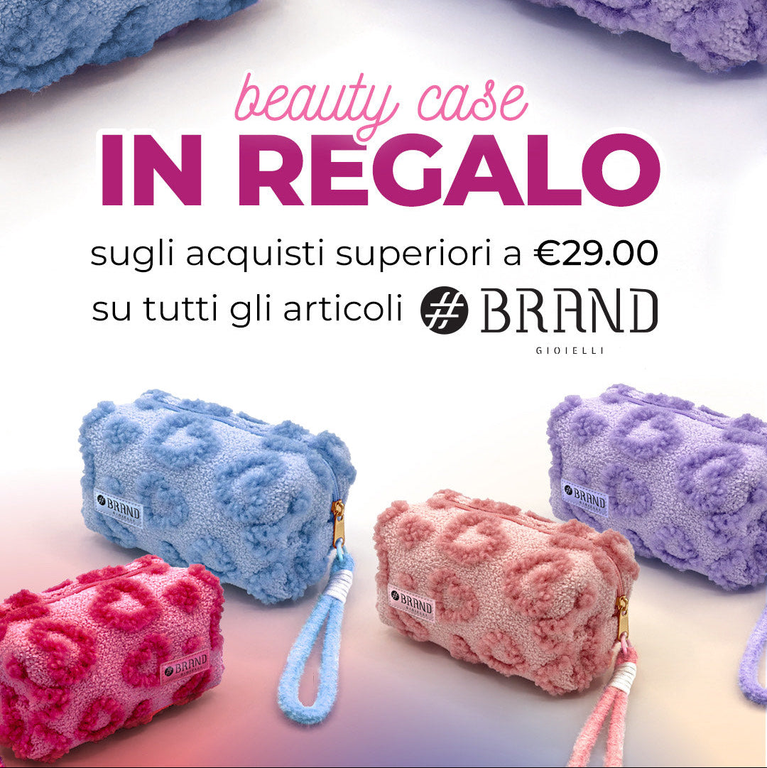 crea il tuo carrello #BrandGioielliBologna ed effettua un acquisto prodotti superiore a 29€, riceverai in regalo lo speciale Beauty Case disponibile in 4 colori! Se desideri un colore in particolare, faccelo sapere inserendo il colore nel campo note presente a carrello in fase d’acquisto.