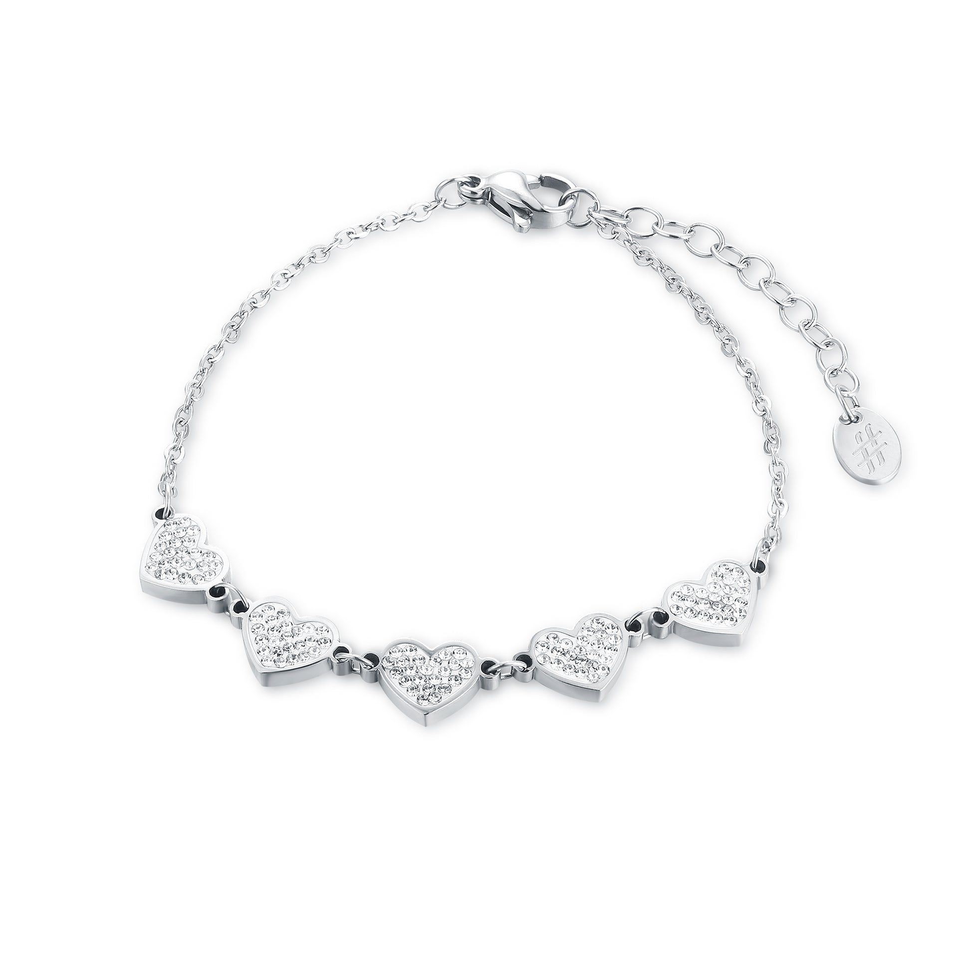 Bracciale con 5 cuori passanti di dimensioni 8mm.