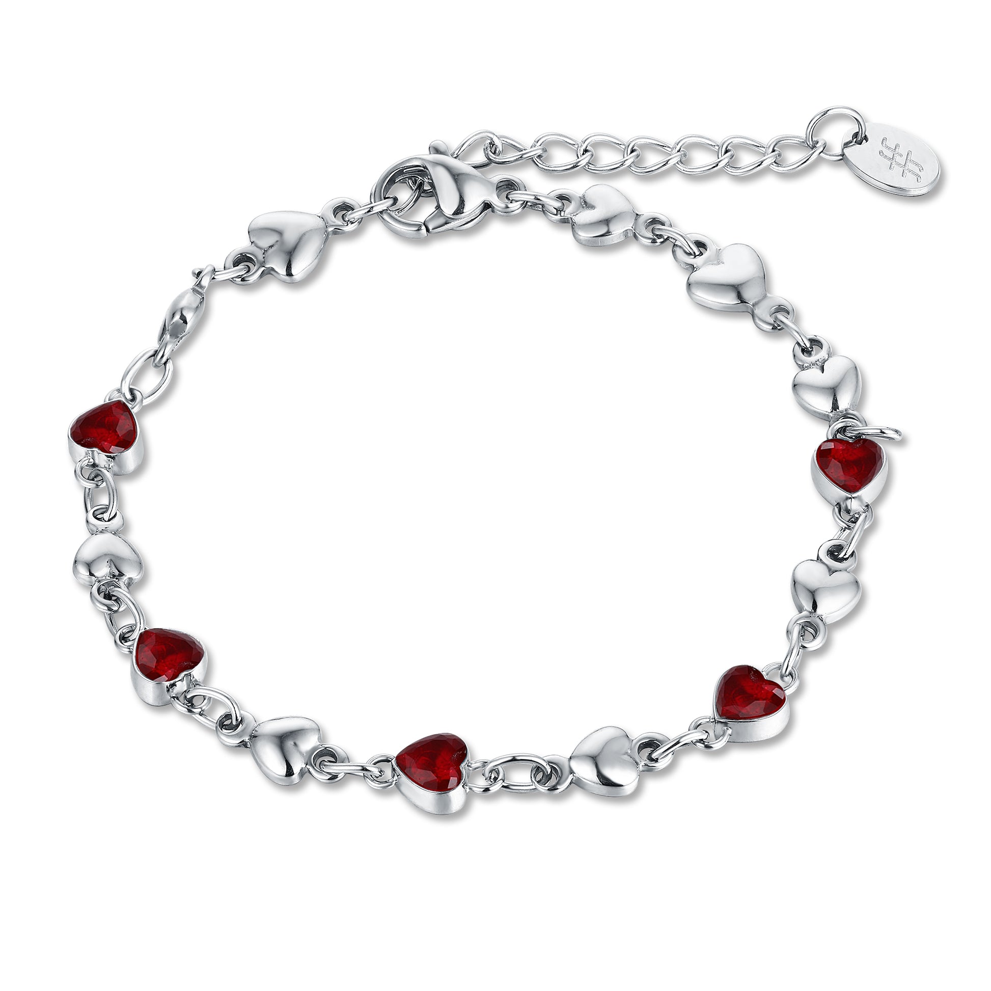Bracciale catena a cuori e cristalli a cuore passanti rossi