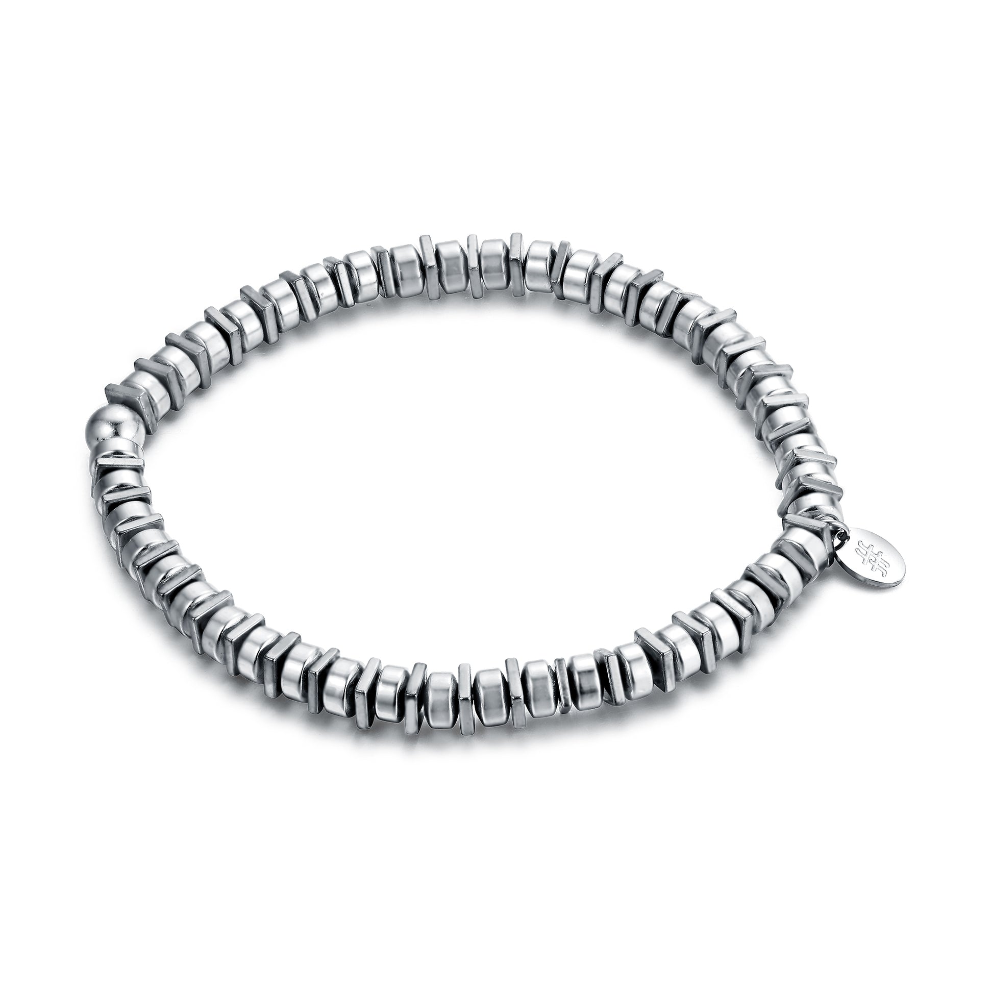 Bracciale Ematite Elasticizzato Con Quadrati e Sfere Rodiate