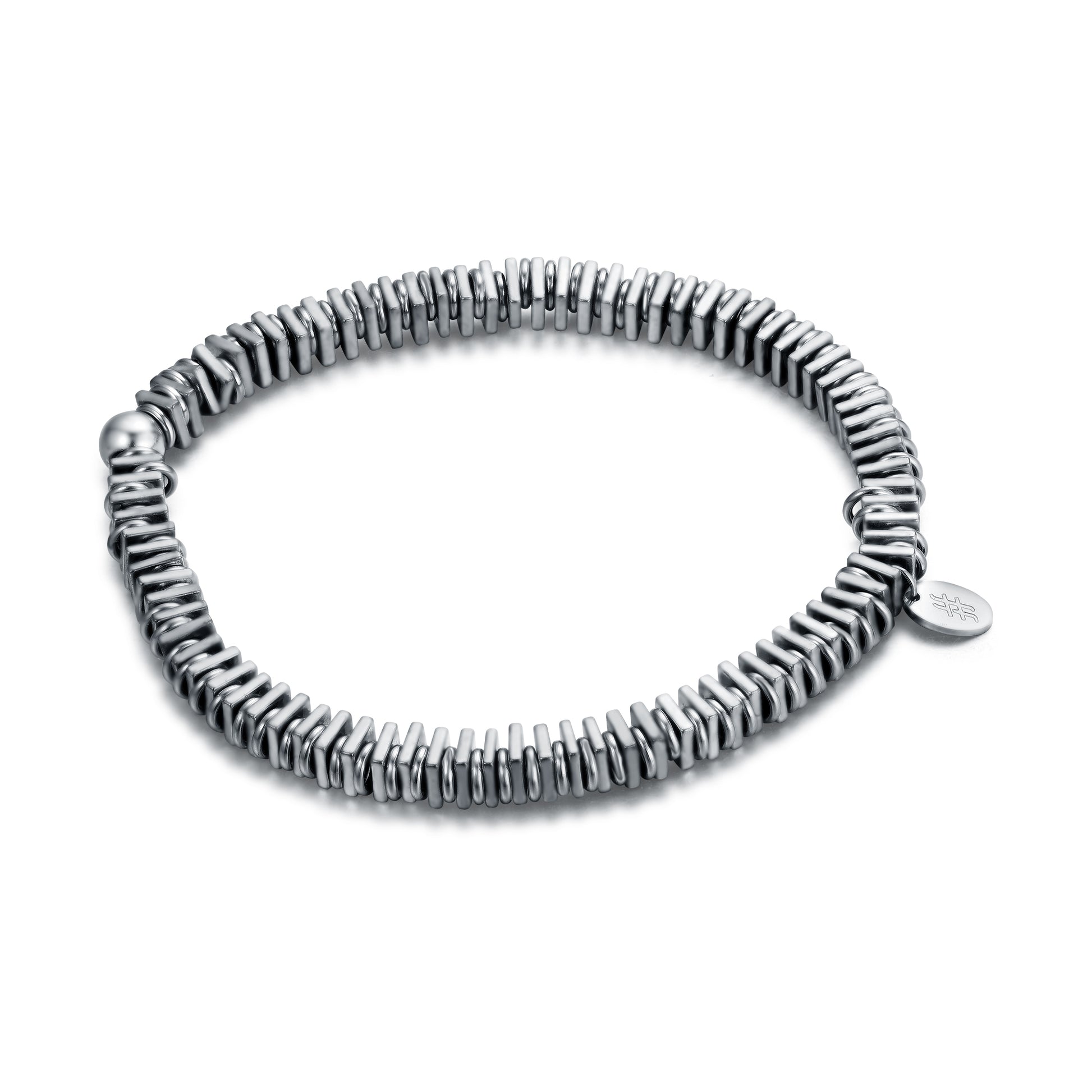 Bracciale Ematite Elasticizzato Con Quadrati Rodiati