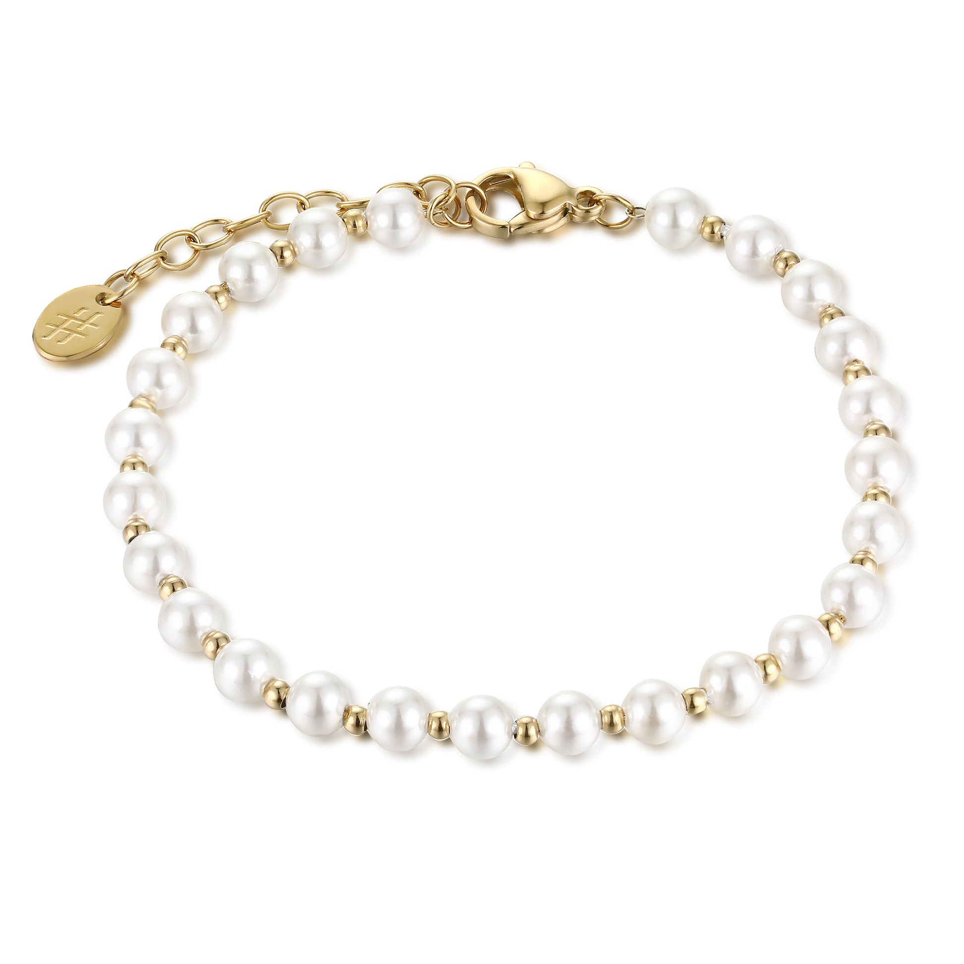 Bracciale in Madreperla e Sfere di acciaio in pvd oro