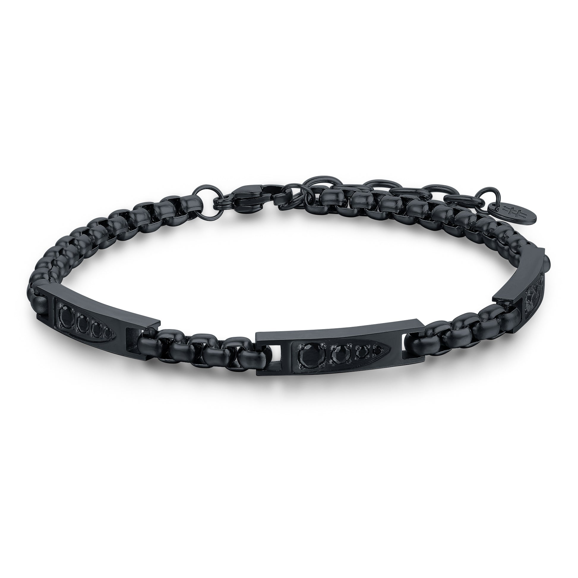 Bracciale acciaio pvd nero con tre inserti cristalli neri