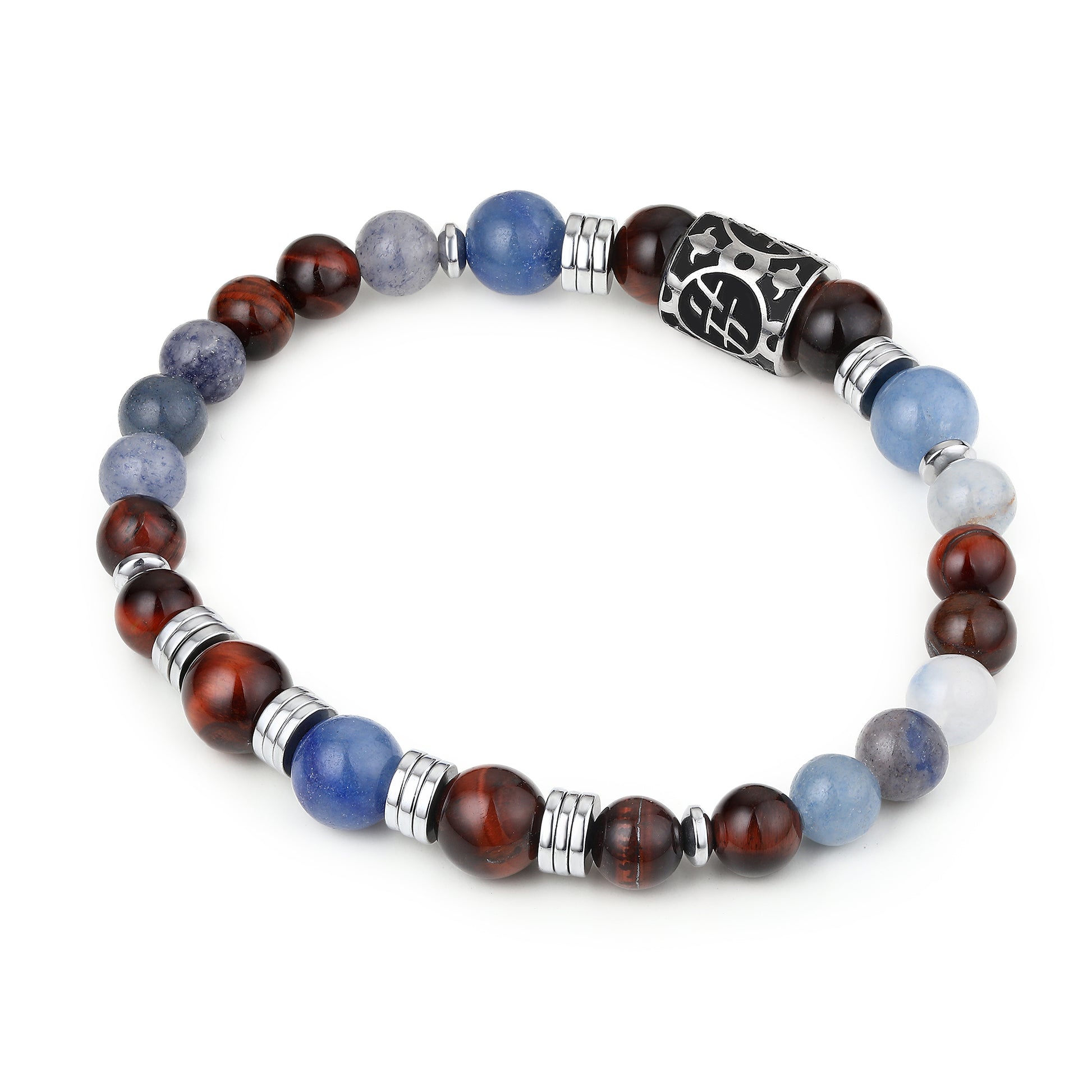 Materiale: occhio di tigre rosso e avventurina, acciaio inossidabile e dischetti in ematite