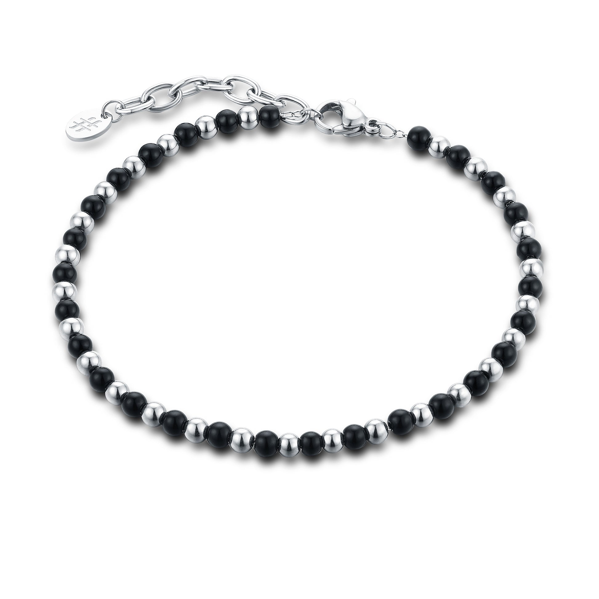 Bracciale sfere di agata nera ed ematite da 3,5mm.