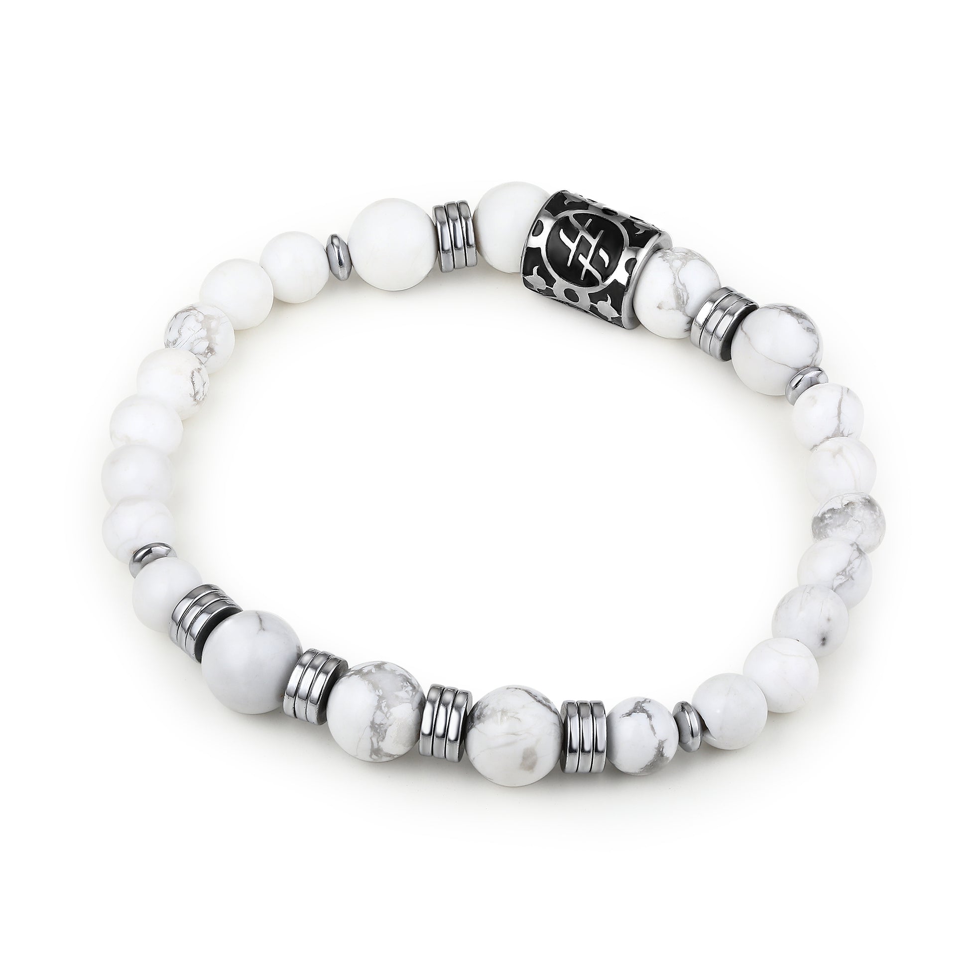 Materiale: turchese bianco, acciaio inossidabile e dischetti in ematite