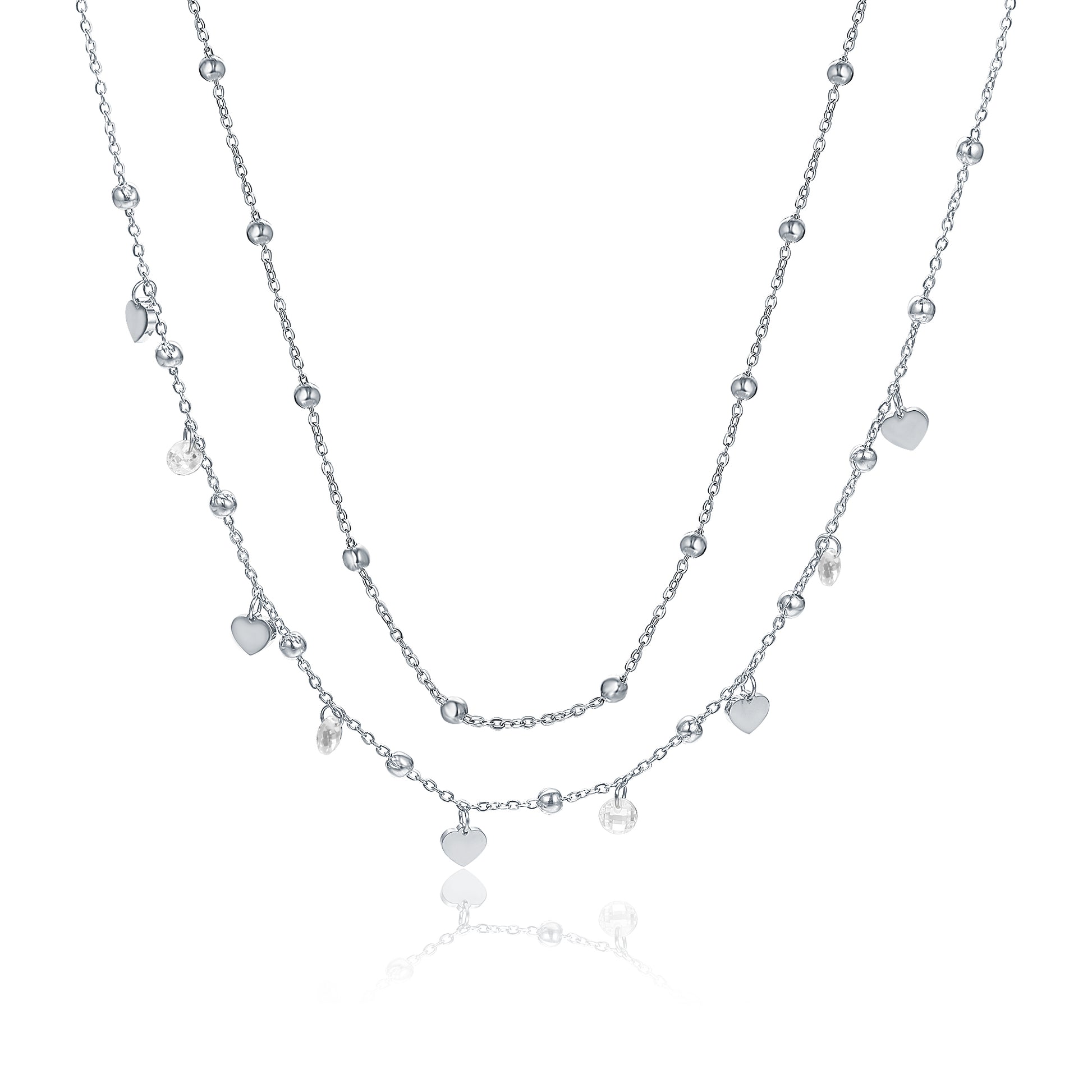 Collana Doppia Cuori Acciaio e Cristalli Bianchi