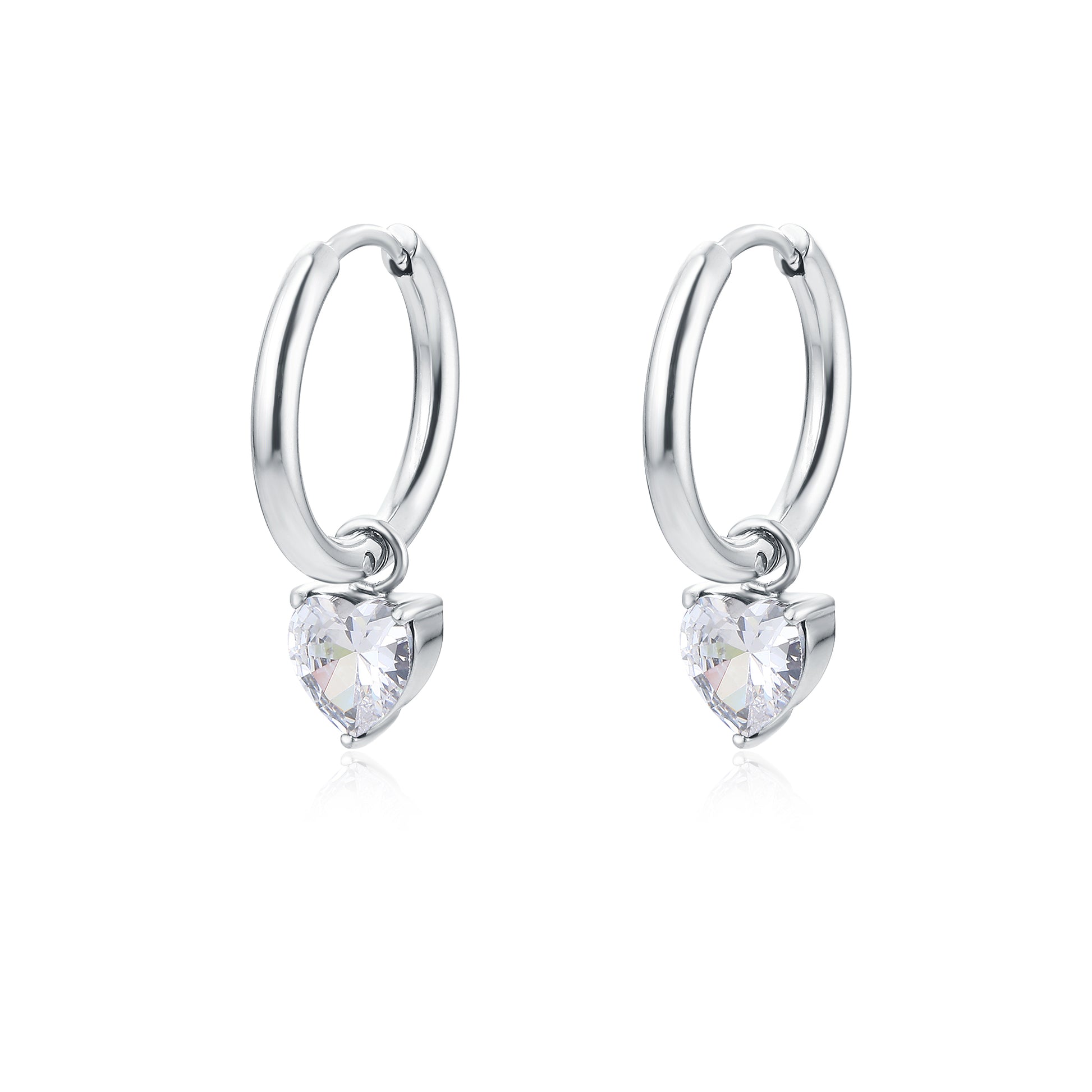 Coppia di orecchini a cerchio con pendente di cristallo a forma di cuore dimensione 6 mm x 6 mm.