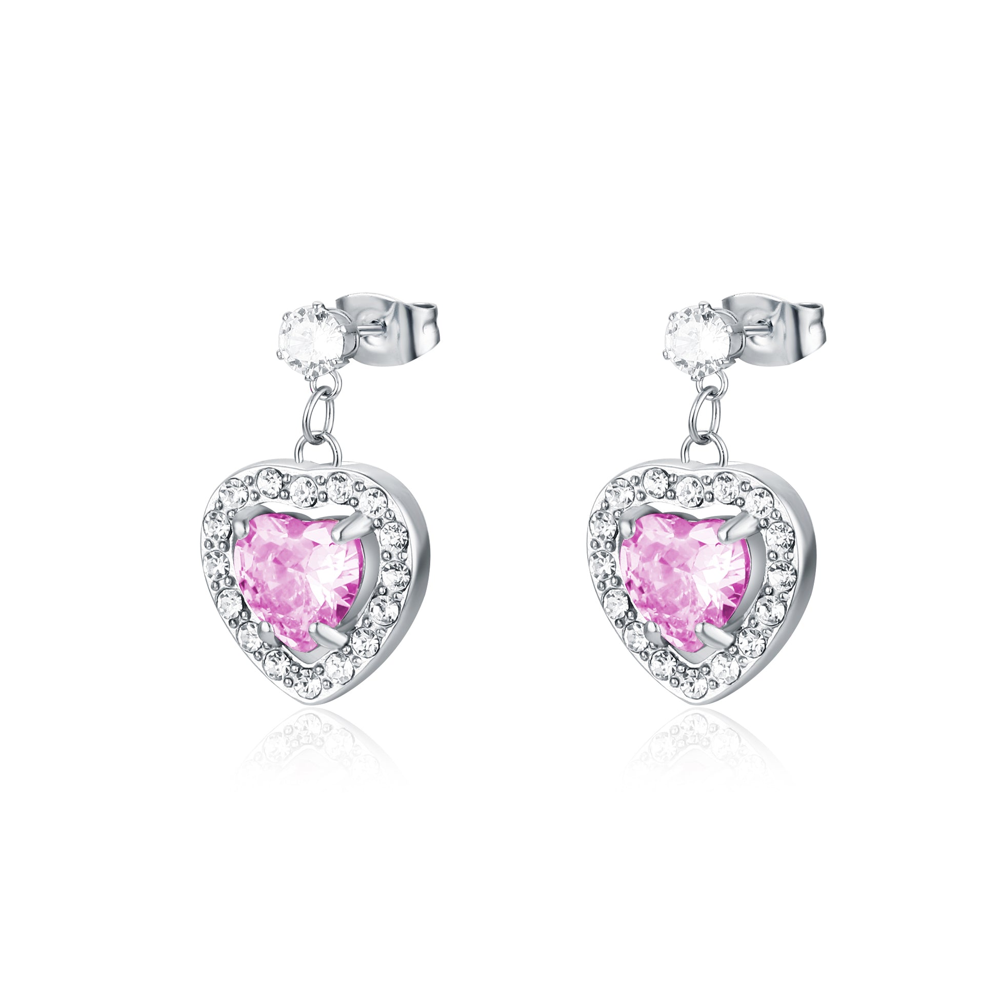 Orecchini punto luce bianco con cristallo cuore rosa pendente
