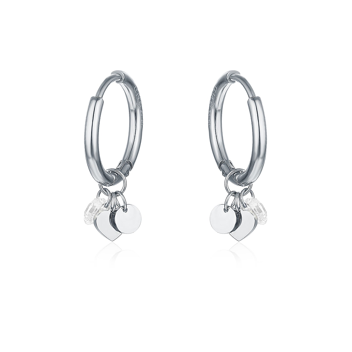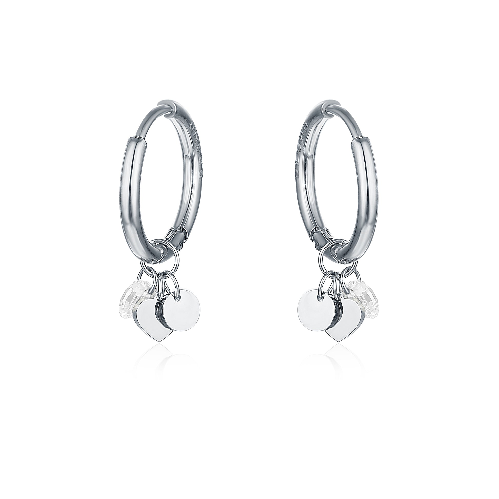Orecchini Cuori Acciaio e Cristalli Bianchi