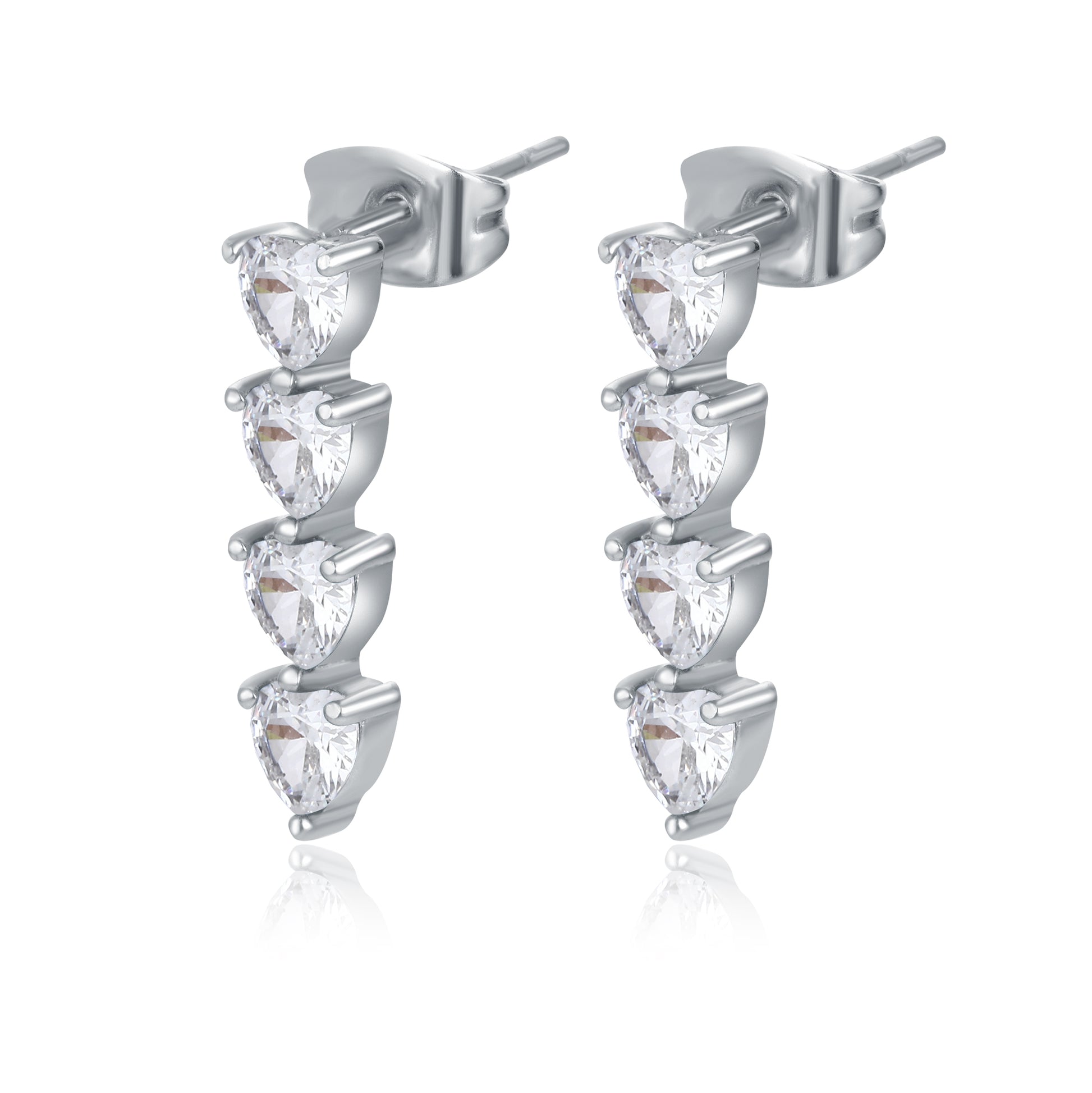 Orecchini con 4 cristalli a cuore pendenti bianchi