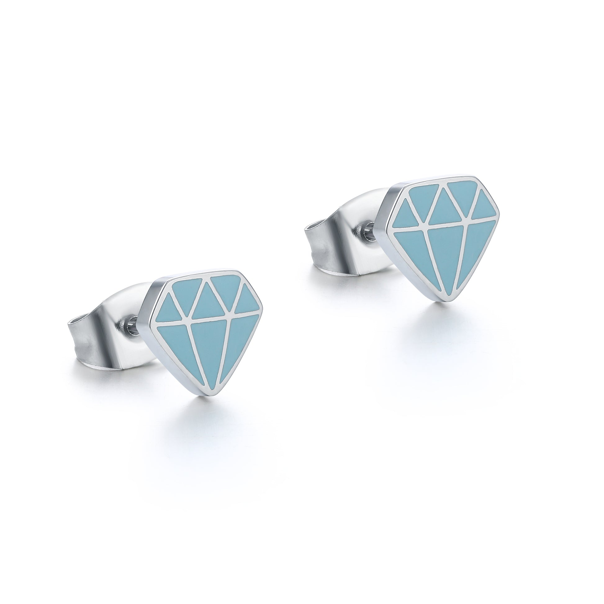 Coppia di orecchini lobo con diamante smaltato dimensione 7 mm x 7 mm.