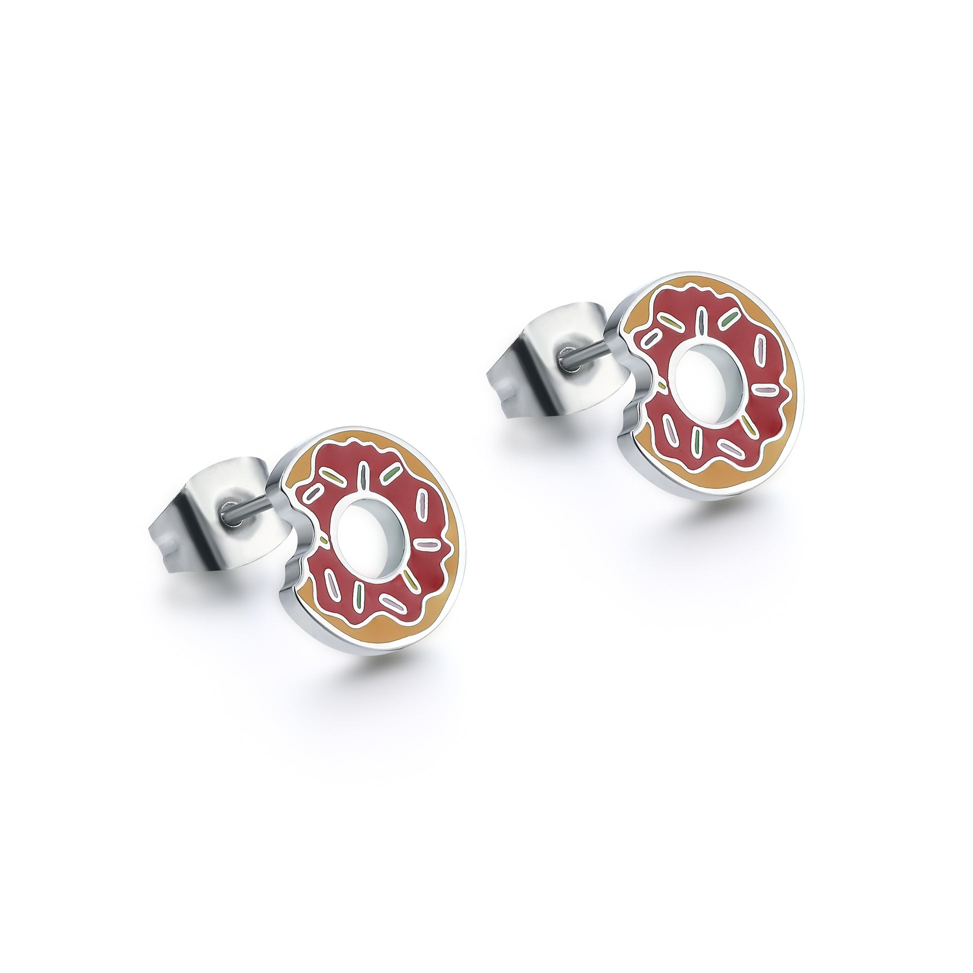 Coppia di orecchini lobo con donut smaltato dimensione 9 mm x 9 mm.