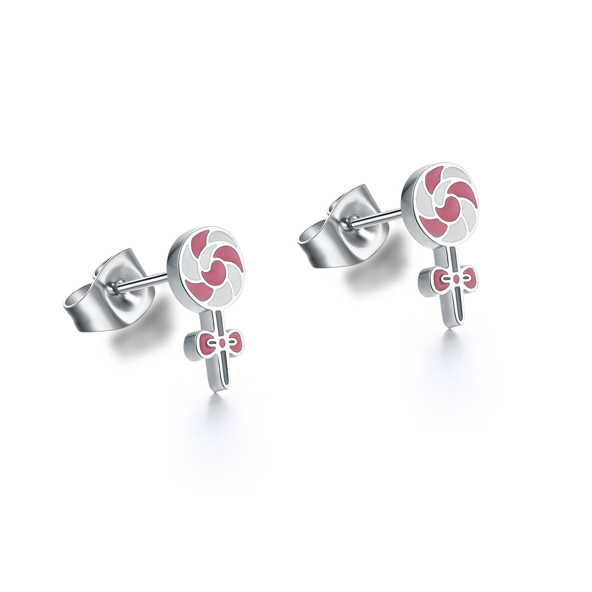 Coppia di orecchini lobo con lecca lecca smaltato dimensione 10 mm x 5 mm.