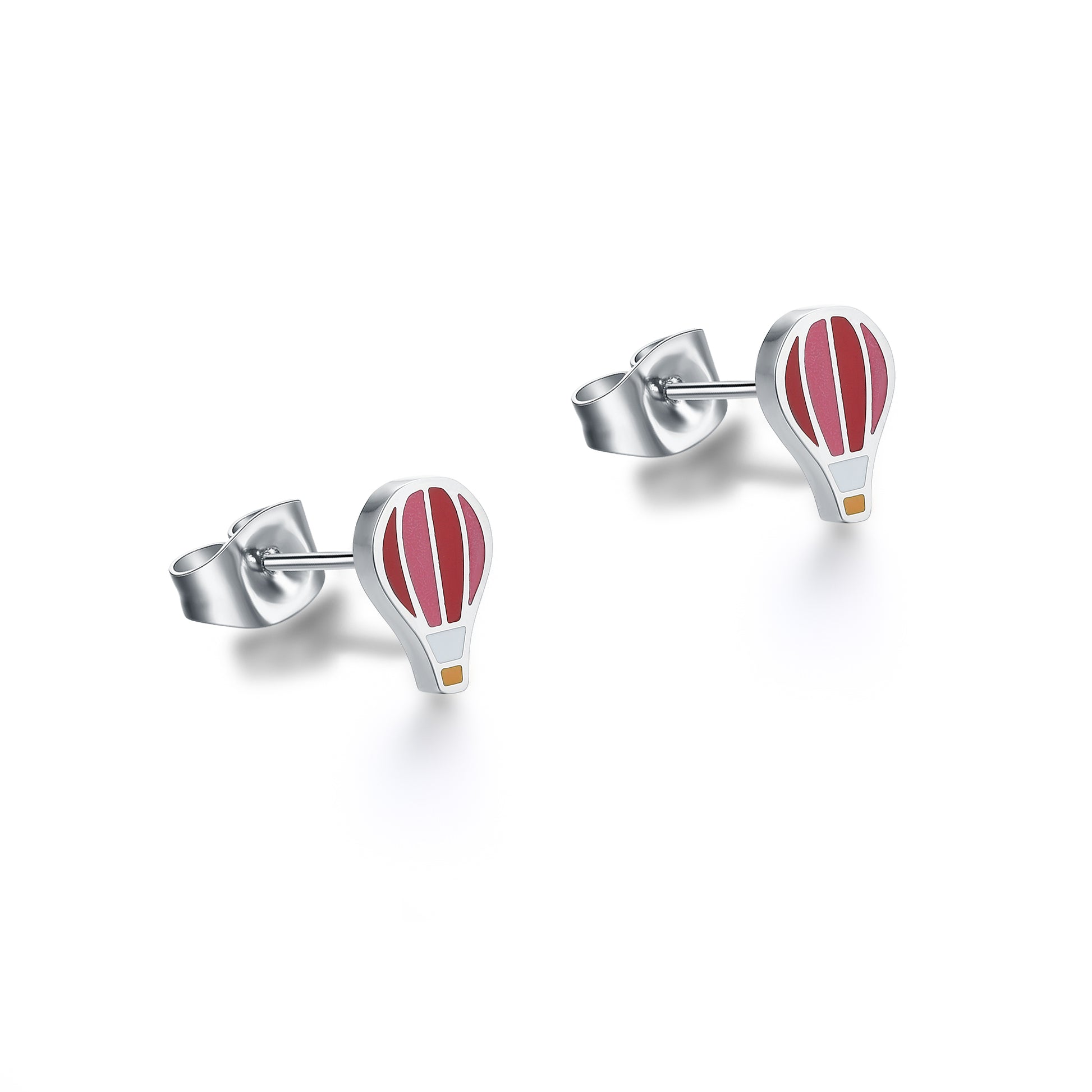 Coppia di orecchini lobo con mongolfiera smaltata dimensione 8 mm x 5 mm.