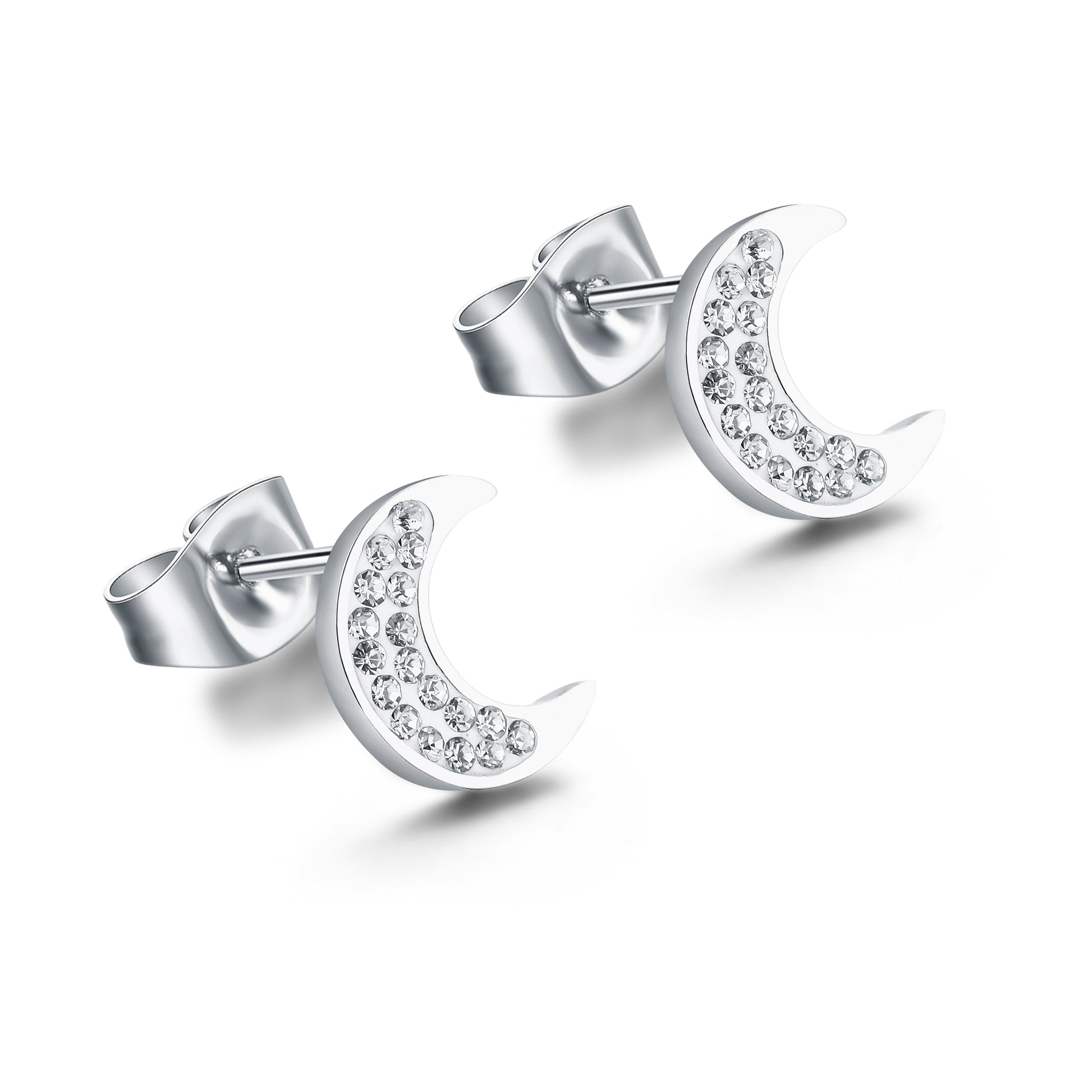 Orecchini lobo luna con cristallini bianchi