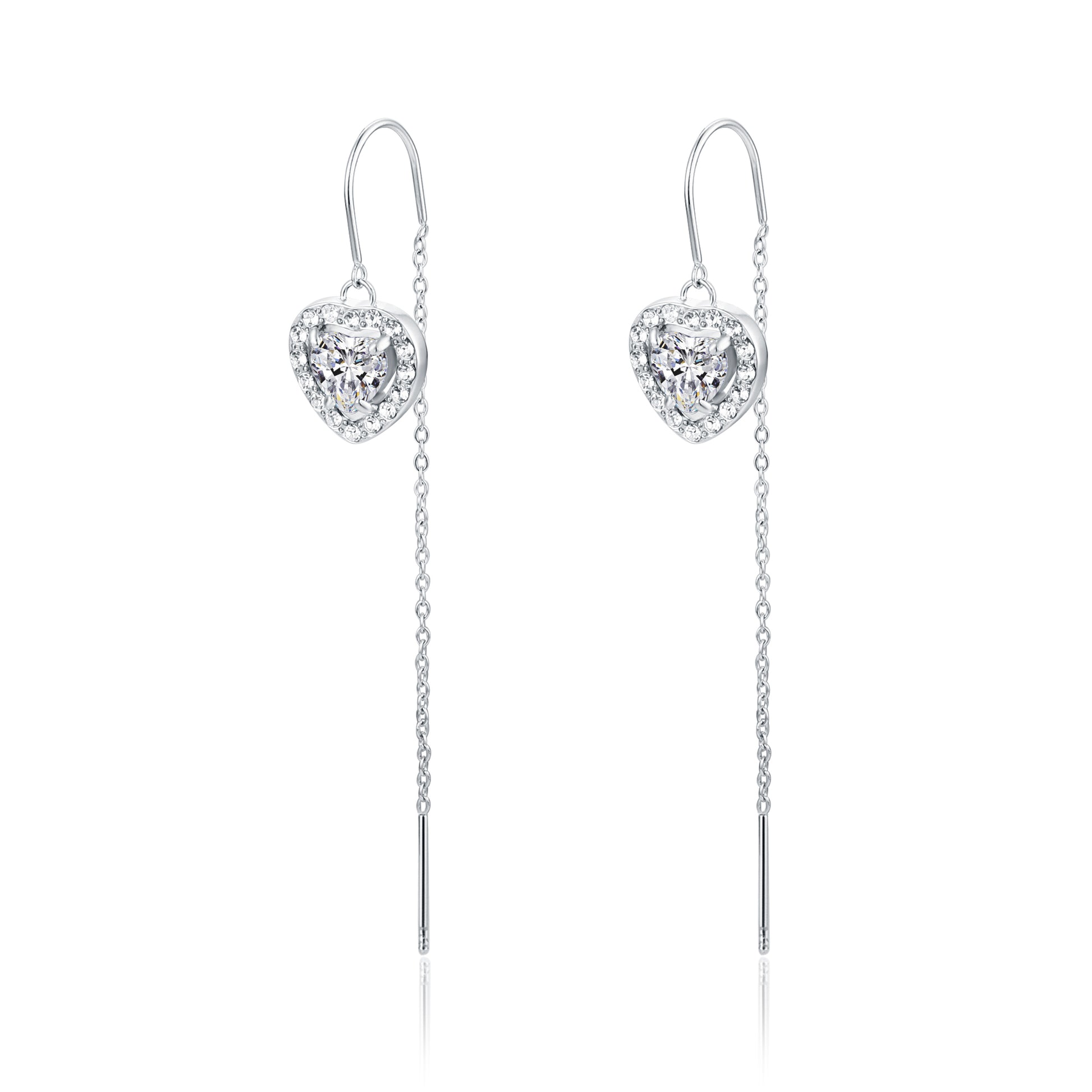 Orecchini saliscendi con cristallo cuore bianco pendente