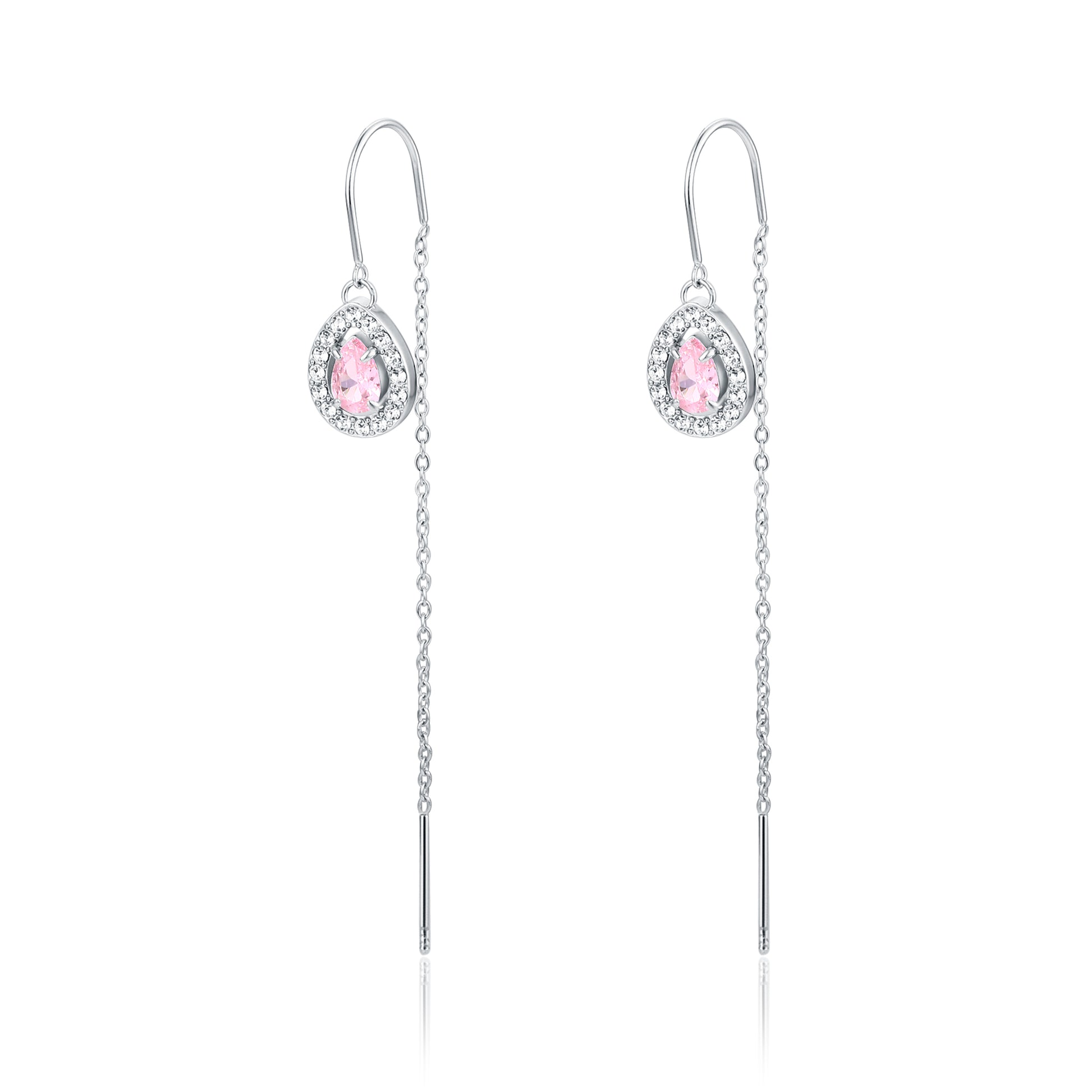 Orecchini saliscendi con cristallo goccia rosa pendente