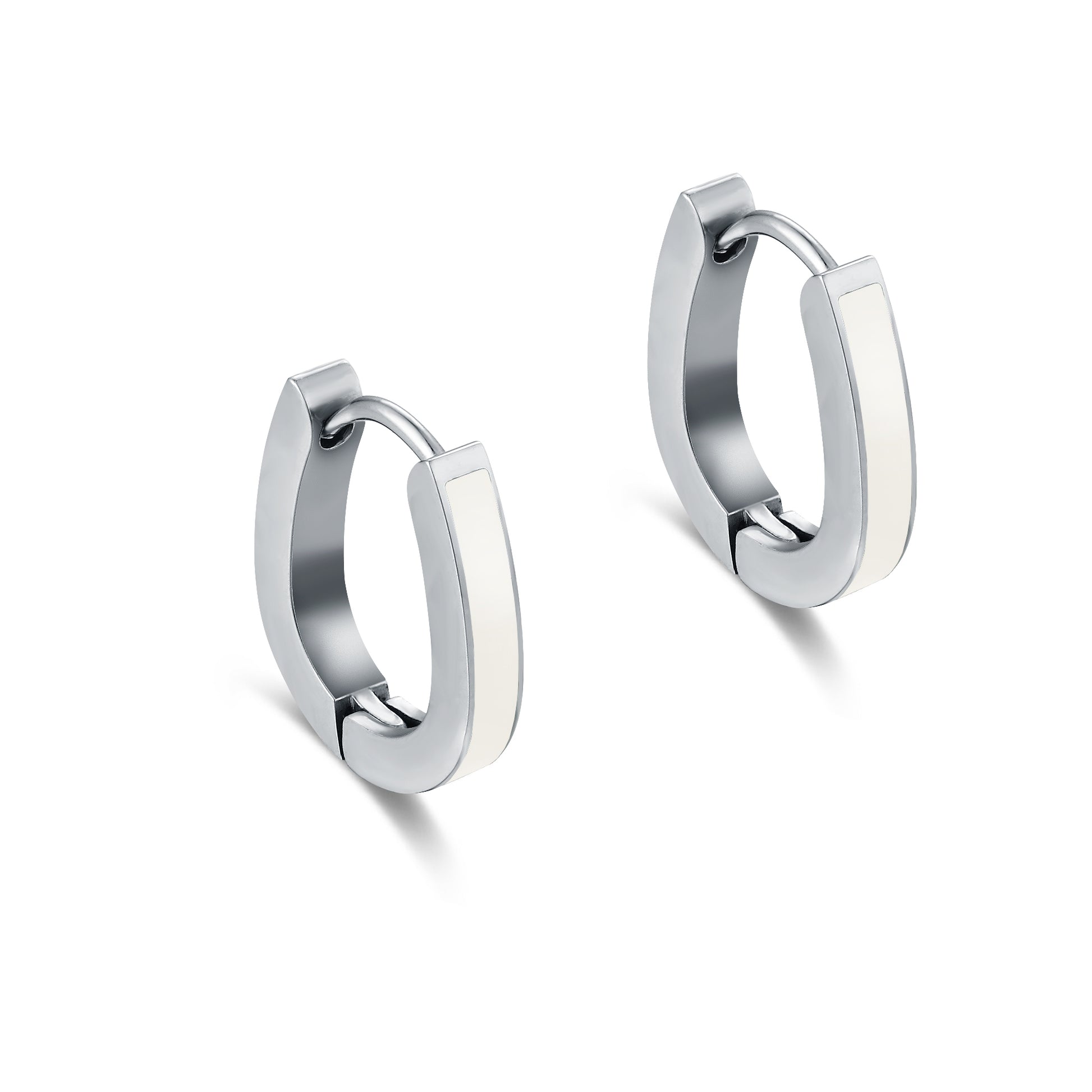 Coppia di Orecchini a Scattino Tondo con Smalto Bianco