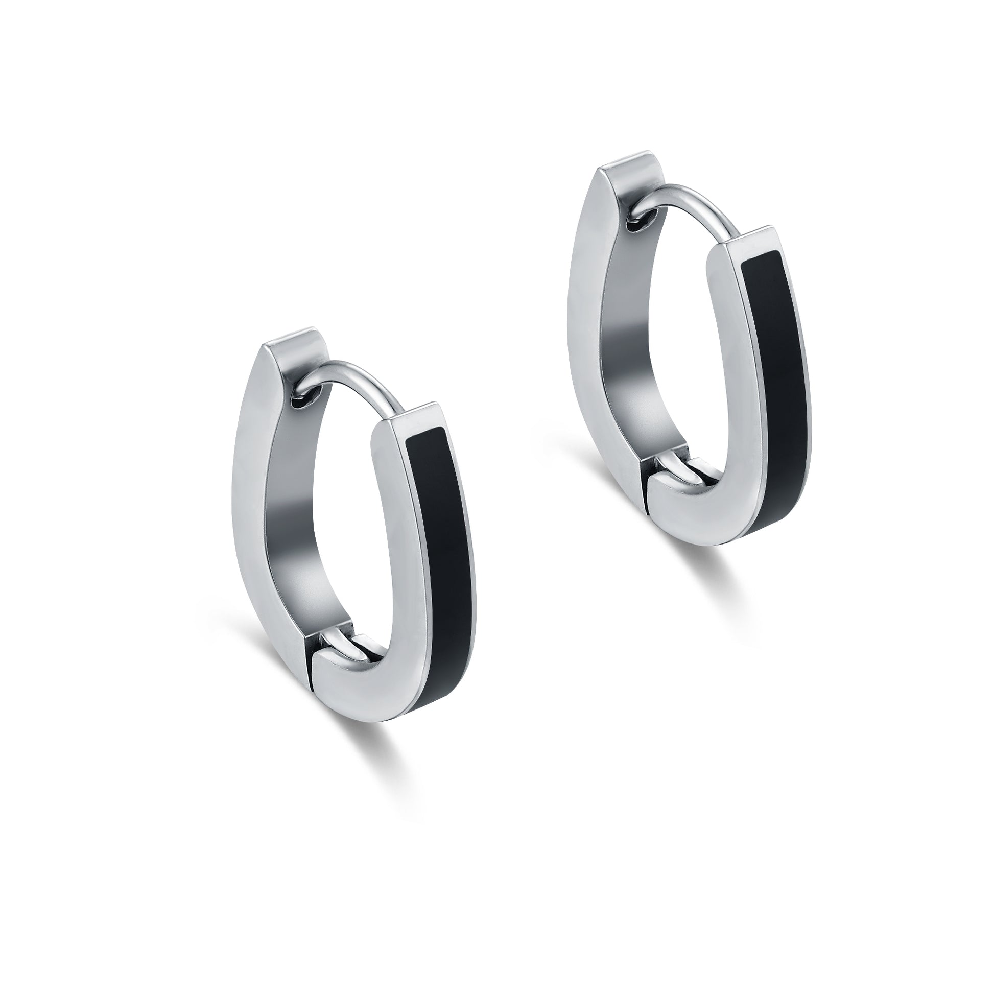 Coppia di Orecchini a Scattino Tondo con Smalto Nero