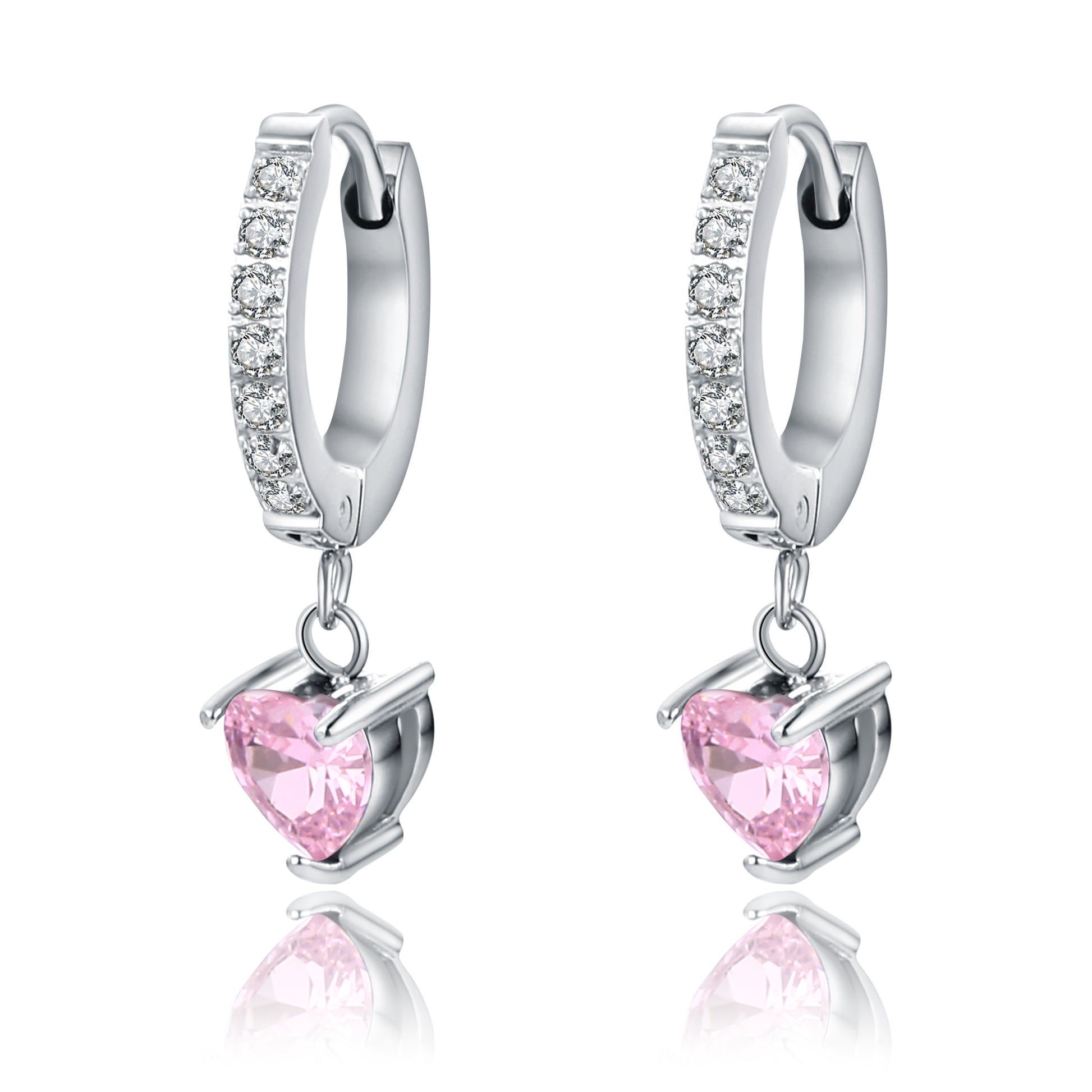 Orecchini a scattino con cuore pendente rosa