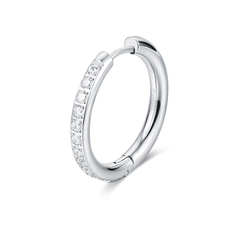 Orecchino scattino bombato versione acciaio con cristalli bianchi