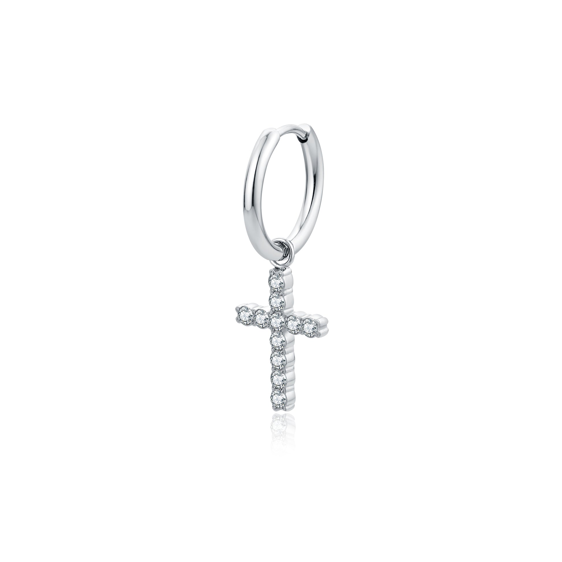 Orecchino a cerchio 16 mm singolo con croce