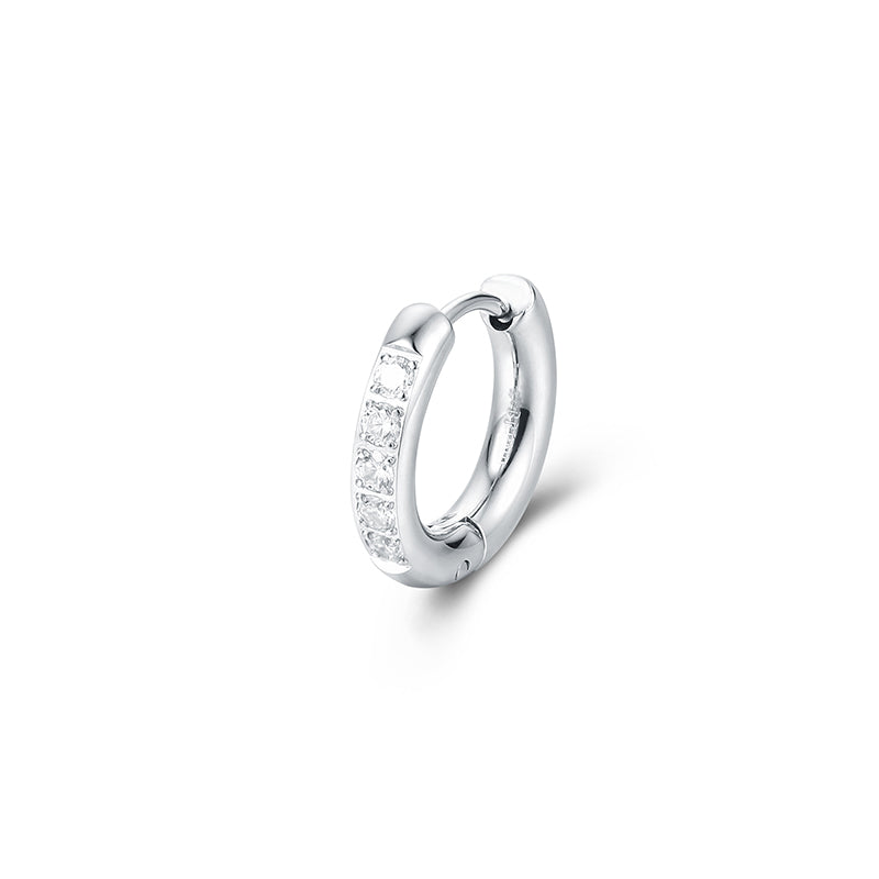 Orecchino scattino bombato versione acciaio con cristalli bianchi