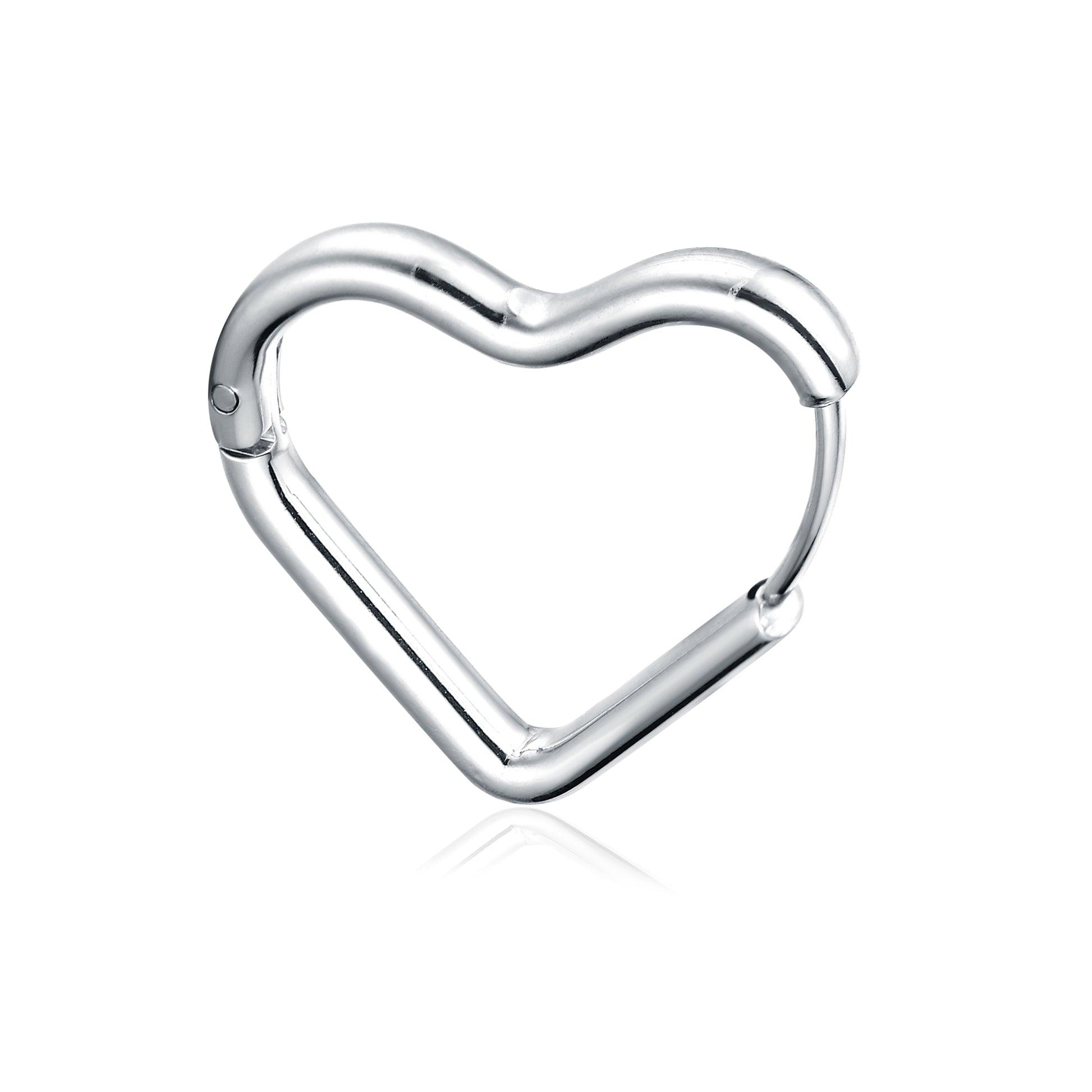Orecchino singolo a scattino a forma di cuore grande in versione acciaio