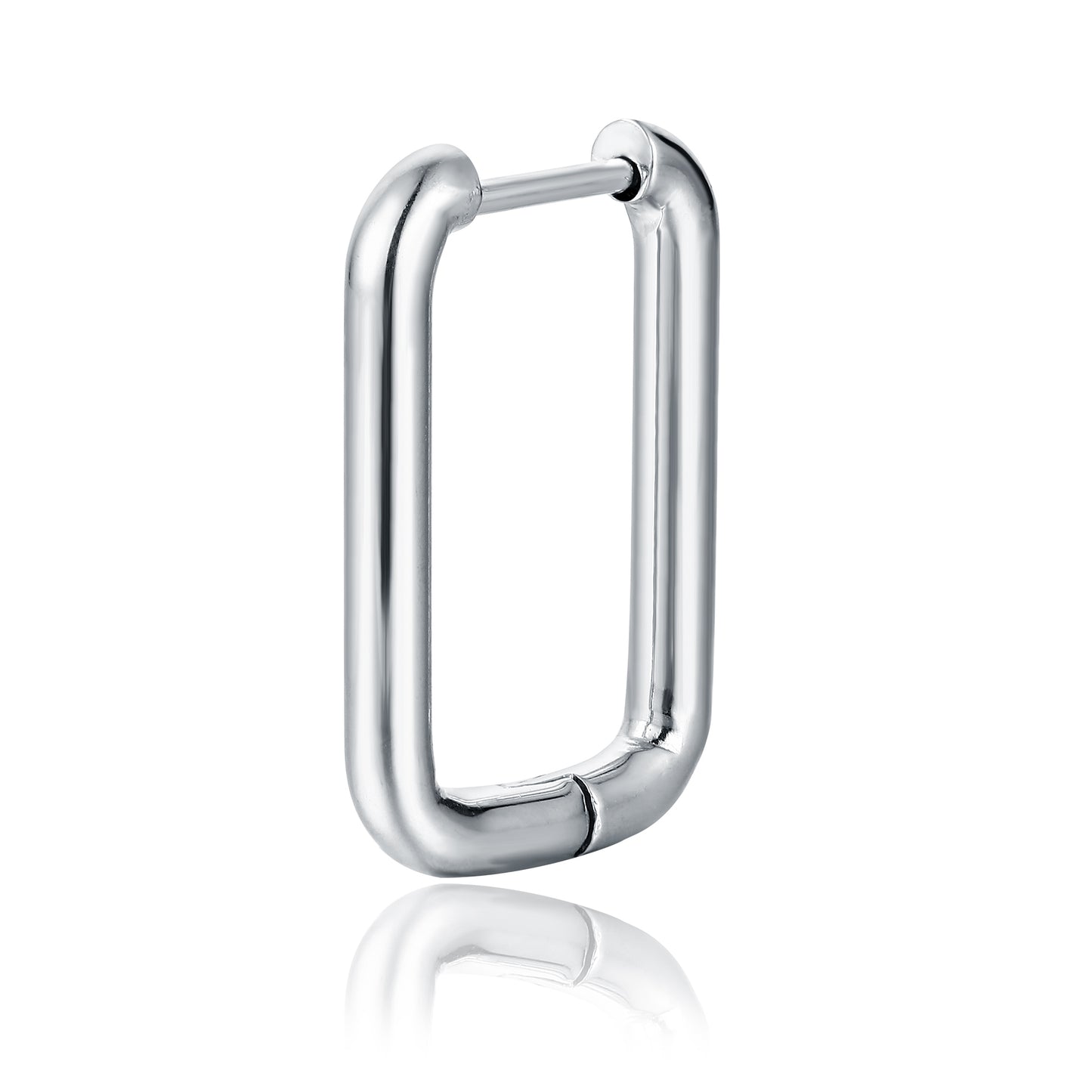 Orecchino singolo a scattino a forma rettangolare in versione acciaio