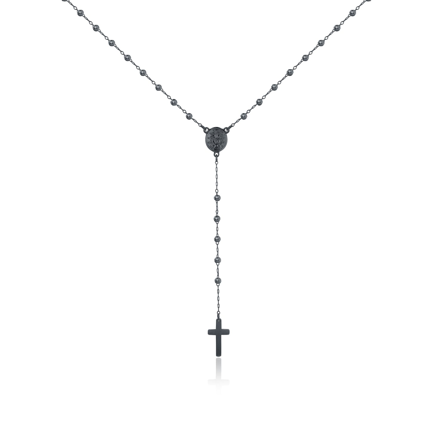 Rosario con grani in ematite sfaccettata e croce in acciaio satinato nero.